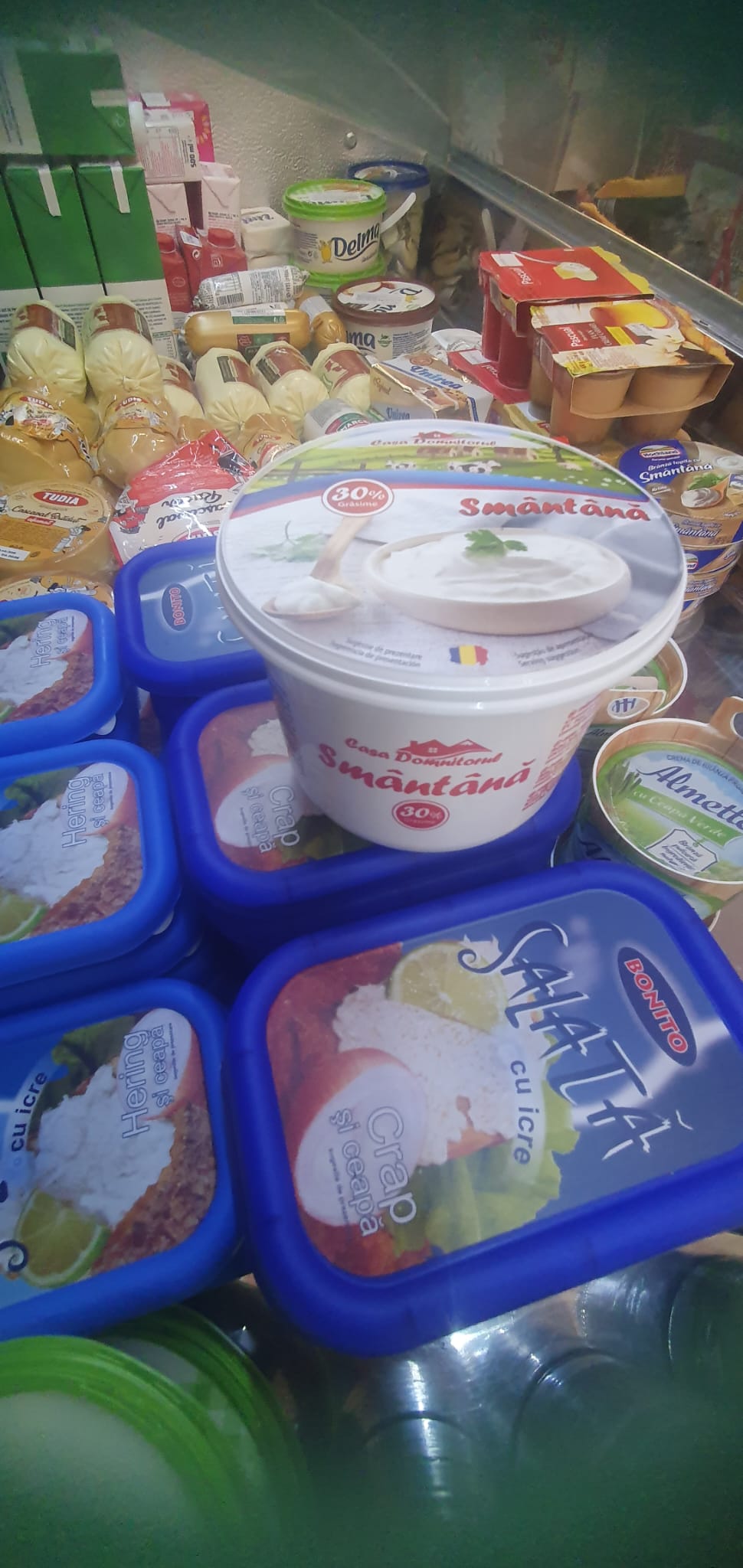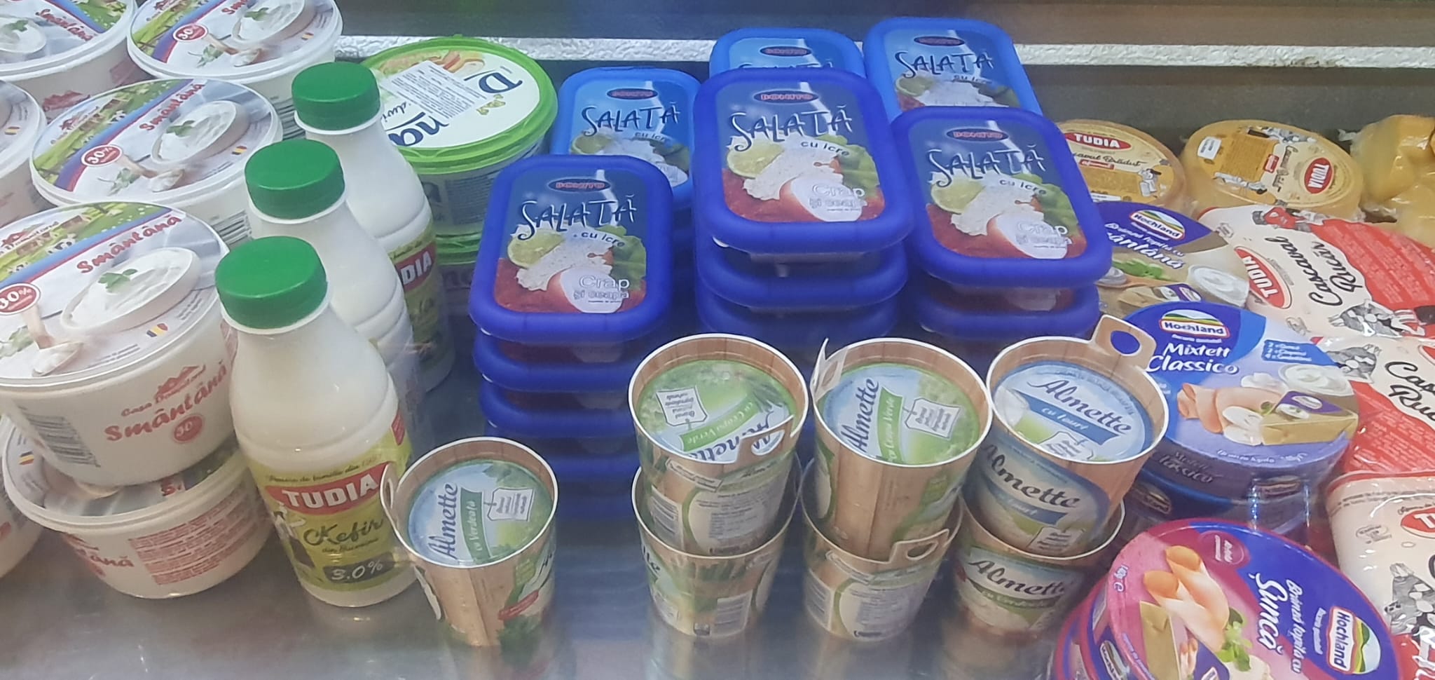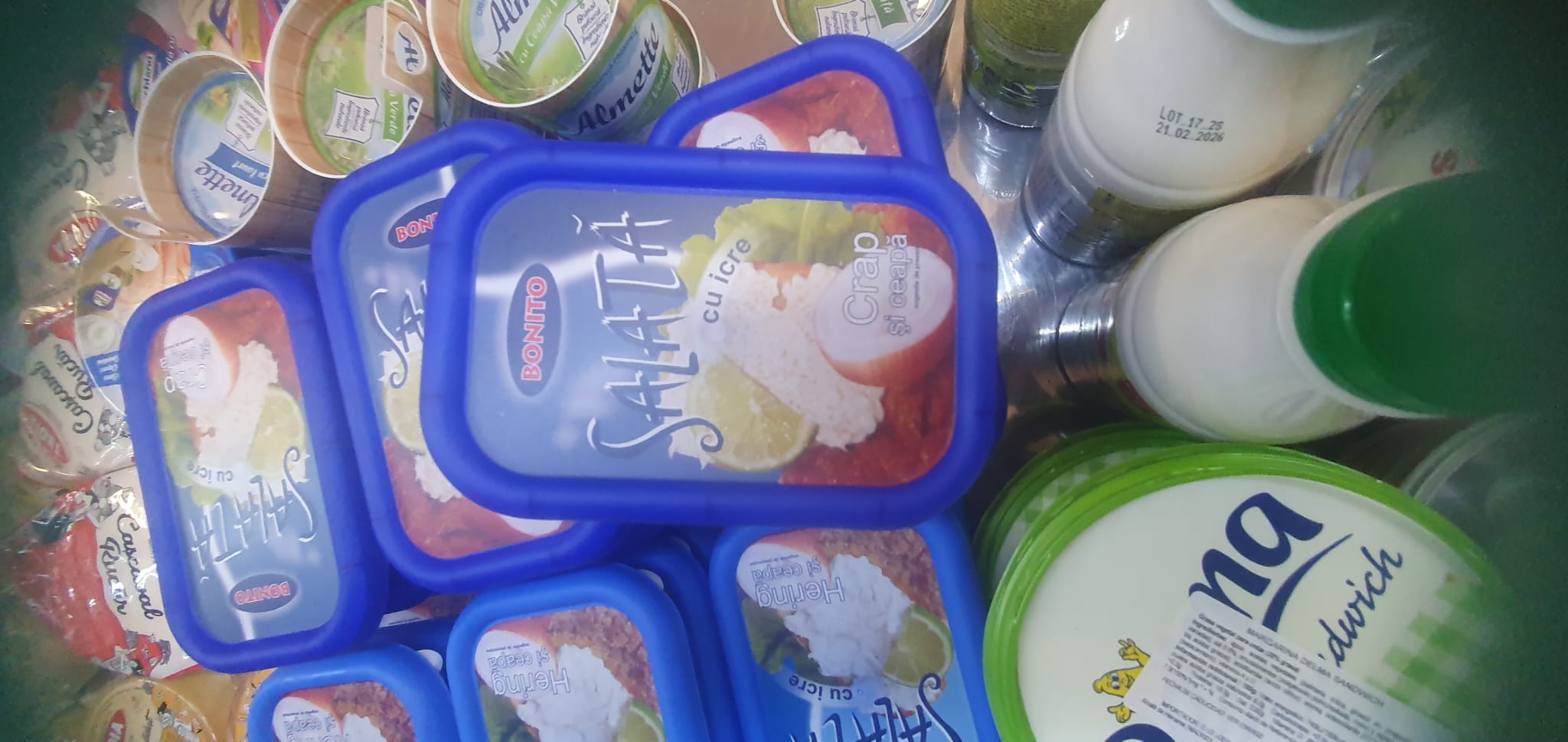 Nata fresca , crema de queso sabor cebolla , sabor yogur etc, ensalada de huevas de pescado de carpa o de arenque , etc